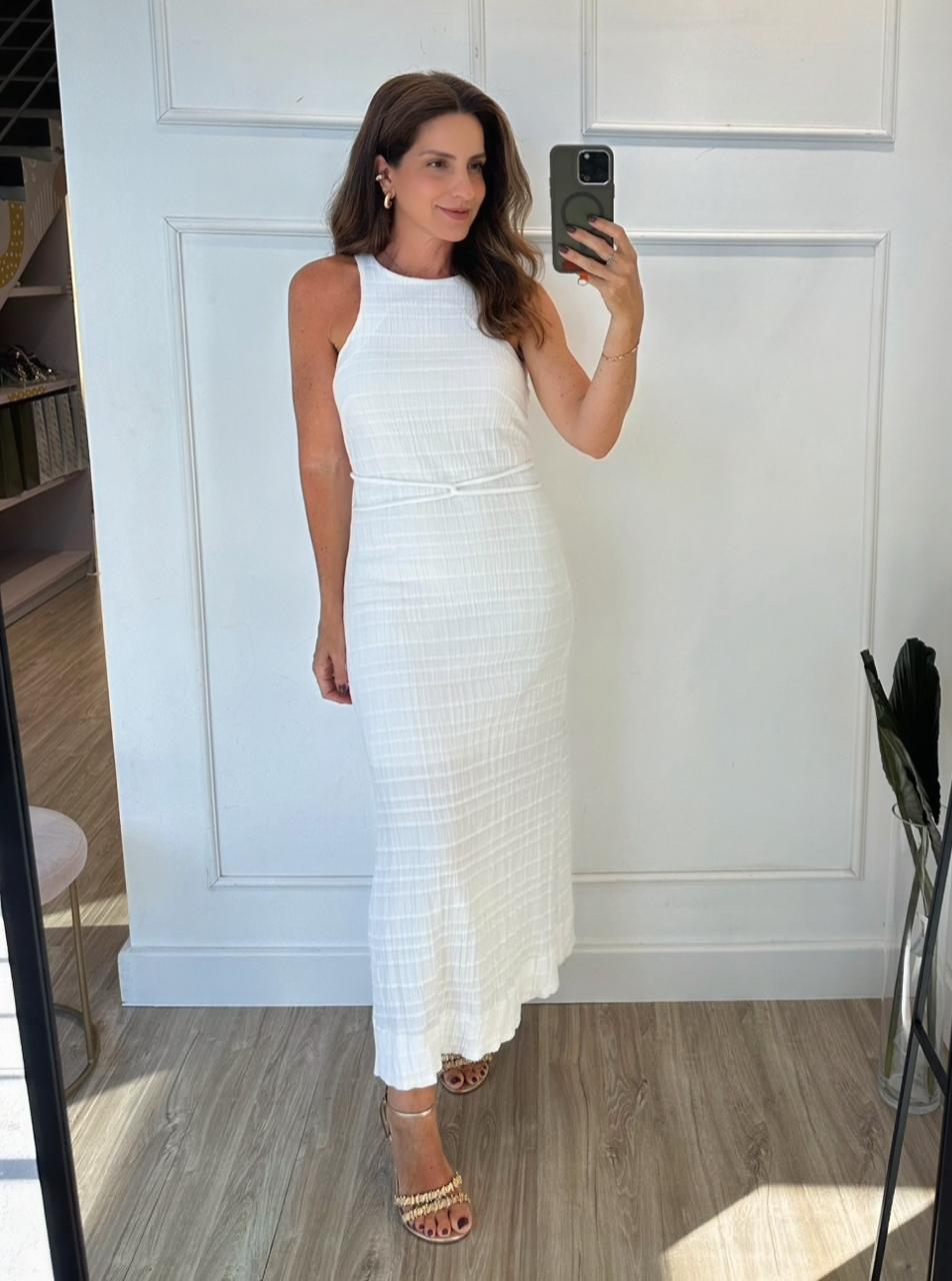 Vestido midi com toque leve e textura amassadinha natural