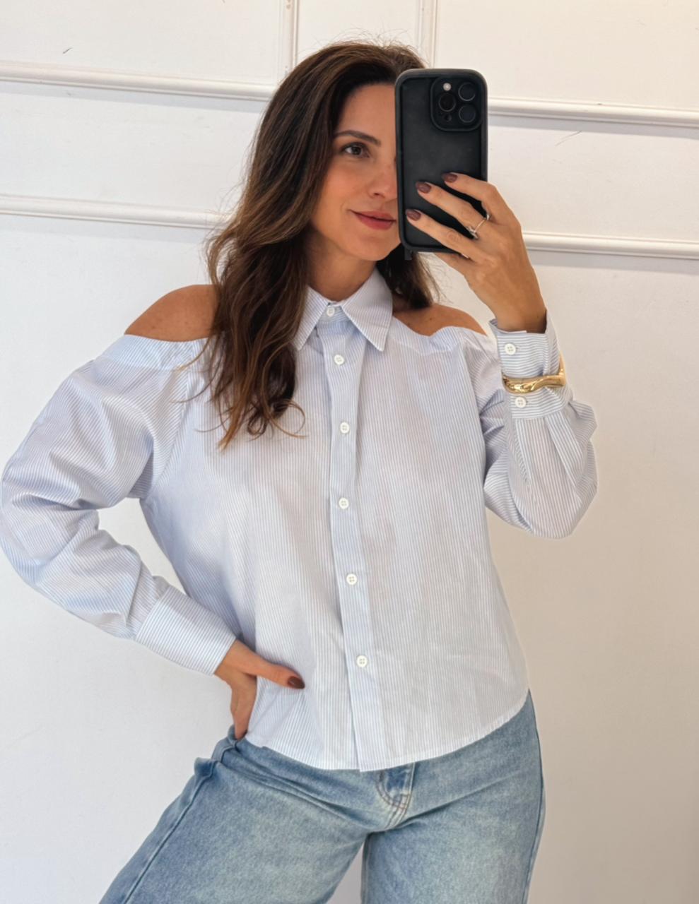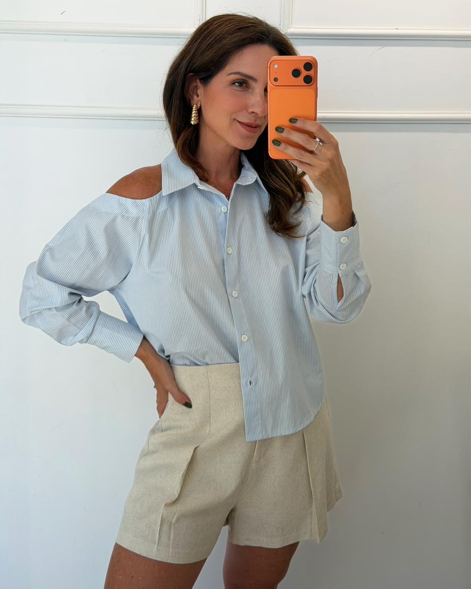Modelo com recorte moderno nos ombros (ciganinha estruturada)
